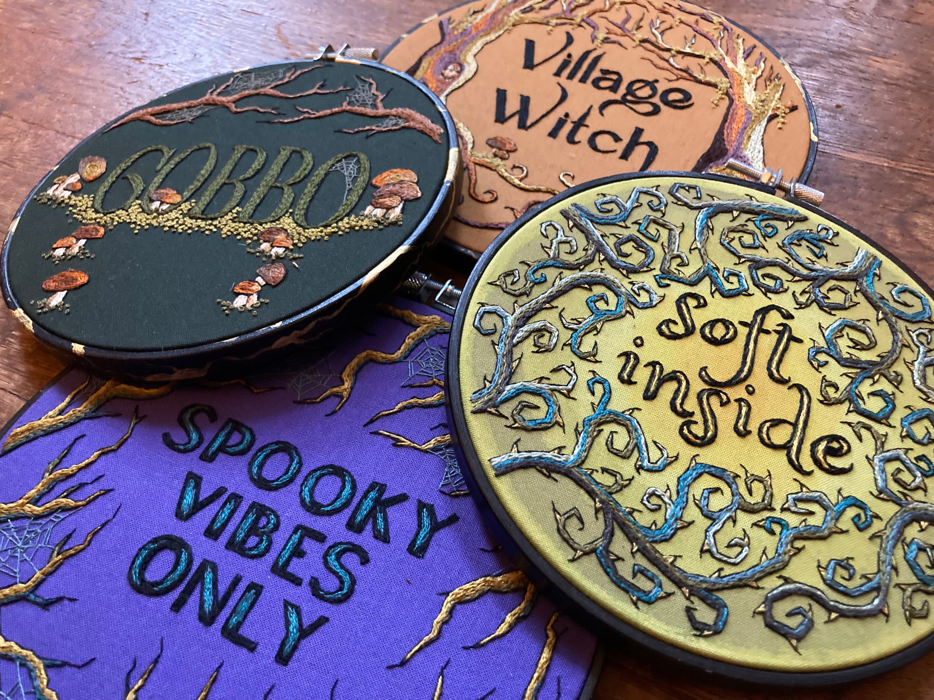 Calling all Gobbos, Witches, Swampbeasts, and Bats! These hand embroidered hoops are...