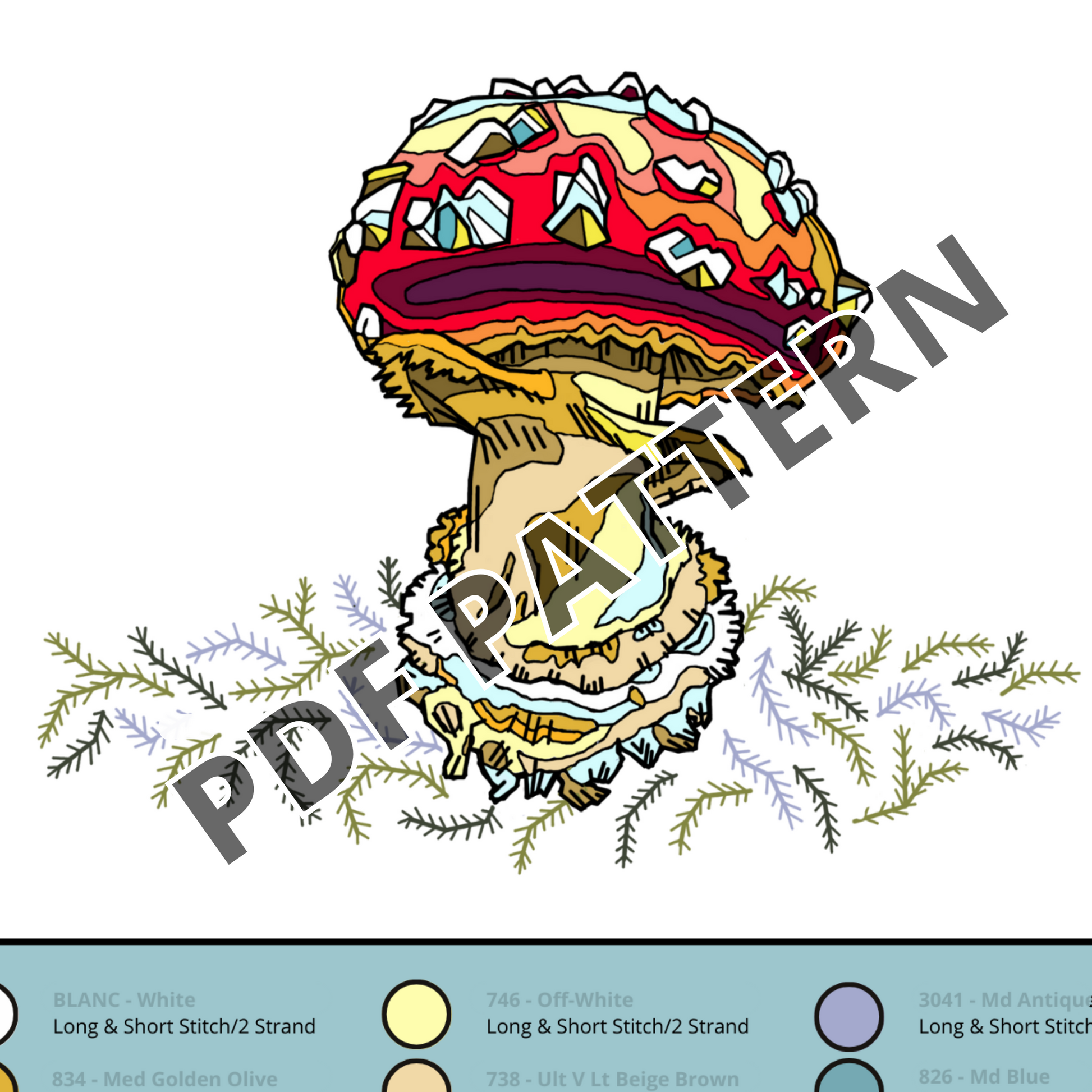 PDF DOWNLOAD Hand Embroidery Pattern - Amanita Muscaria Mushroom