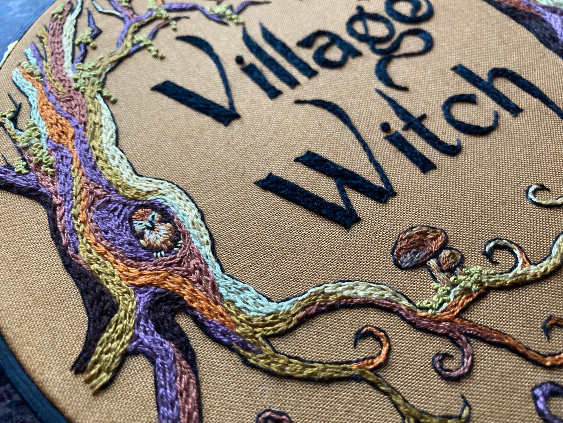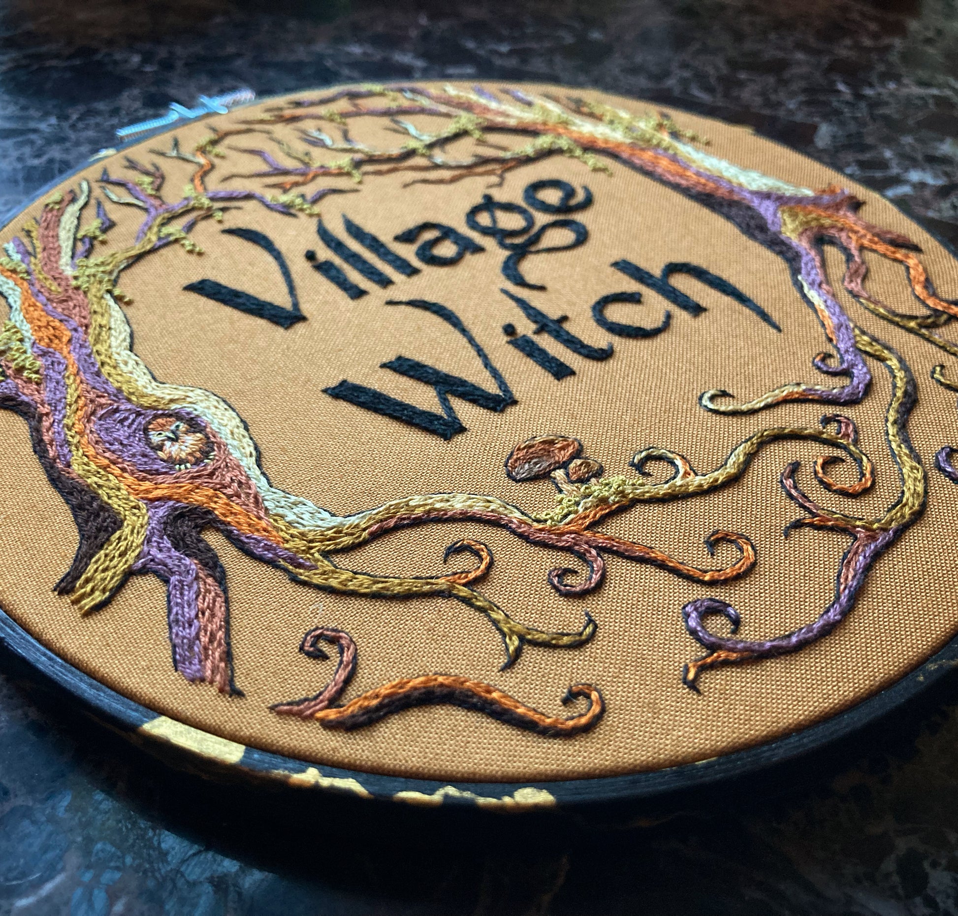 Village Witch Trees and Roots Hand Embroidery - 7"